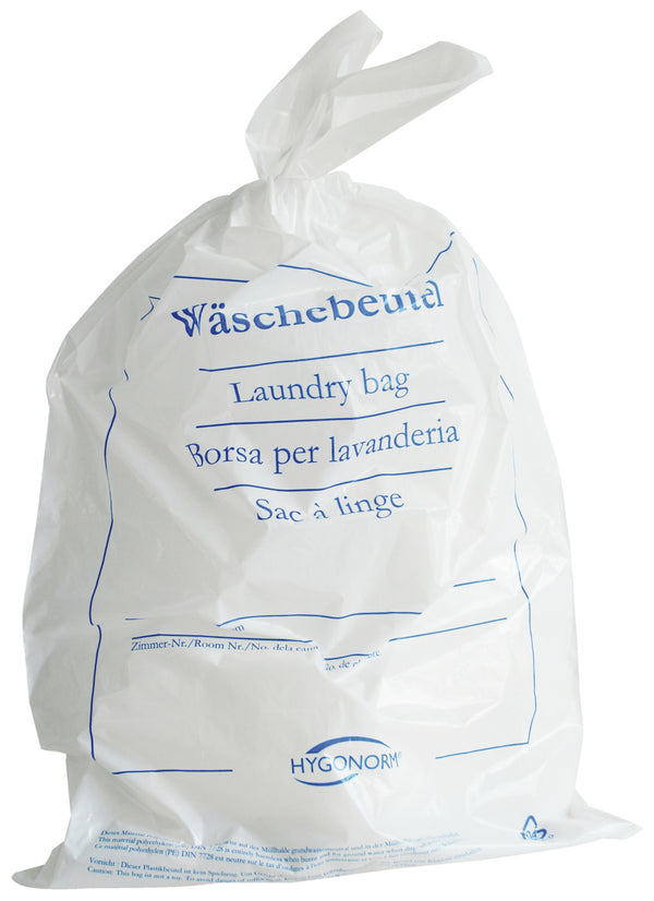 Wytrzymały worek na pranie wykonany z przyjaznej dla środowiska folii polietylenowej o grubości ok. 30 µ. Idealny do hoteli, domów opieki i domów spokojnej starości. Worek na pranie można łatwo zamknąć. Idealny do suchego i wilgotnego prania.