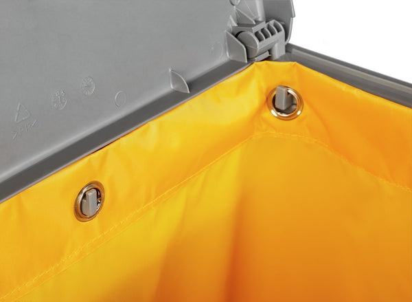 Praktyczny plastikowy wózek do sprzątania. Oferuje dużo miejsca do przechowywania wiader, narzędzi i akcesoriów do sprzątania. Wyposażony w worek na odpady, haczyki na worki na śmieci oraz klipsy na miotły i mopy. Idealny do usuwania odpadów i przewożenia środków czyszczących. Przednia platforma na podwójne lub pojedyncze wiadro. Łatwy do czyszczenia.