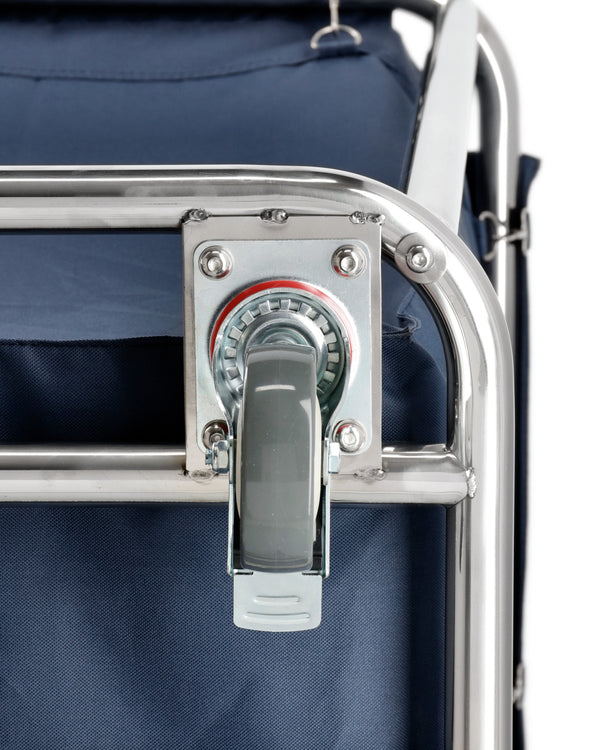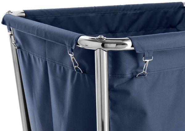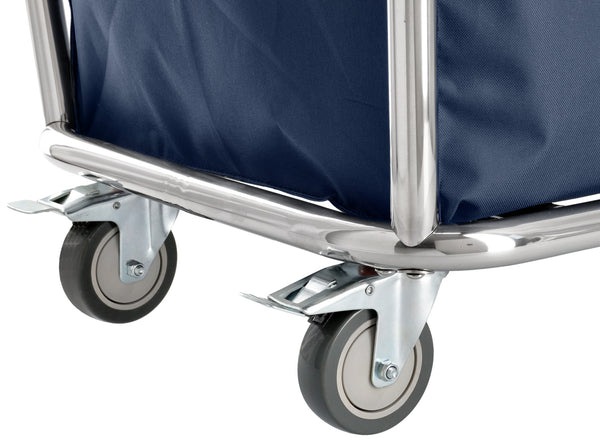 Praktyczny wózek ze stali nierdzewnej z wyjmowanym bawełnianym workiem na pranie, z powłoką PVC i polipropylenowymi kółkami. Z czterema kółkami (średnica 10 cm), z których dwa mają hamulec blokujący. Maksymalny udźwig 100 kg. Dostarczany w stanie rozmontowanym, łatwy w montażu.