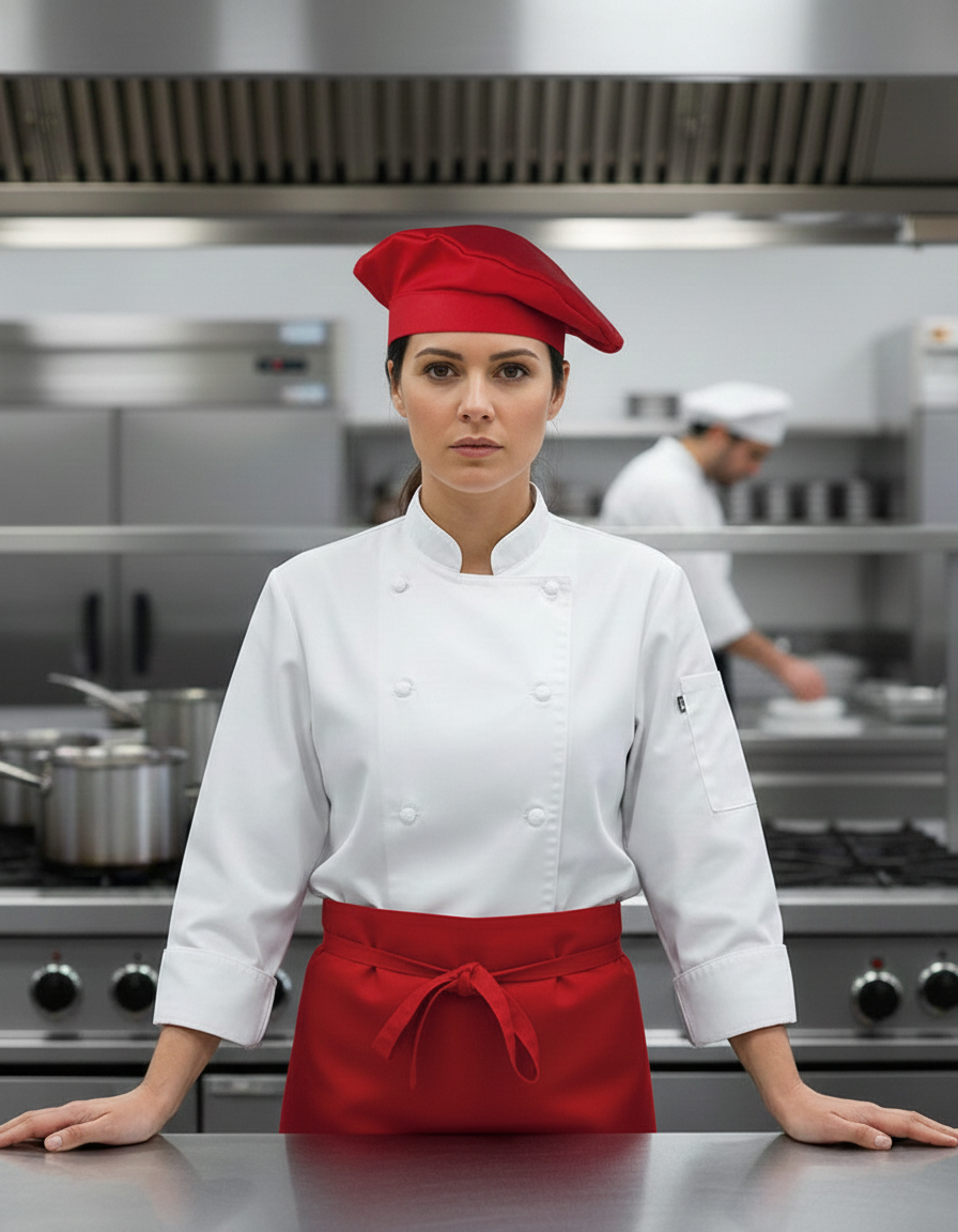Funkcjonalne nakrycie głowy wykonane z tkaniny mieszanej - praktycznej i łatwej w pielęgnacji. Tkanina wyróżnia się trwałym kolorem, małą gniotliwością i wytrzymałością na pranie w wysokich temperaturach. Rozmiar uniwersalny. Wysokość dolnej części (otok): 3,5 cm.