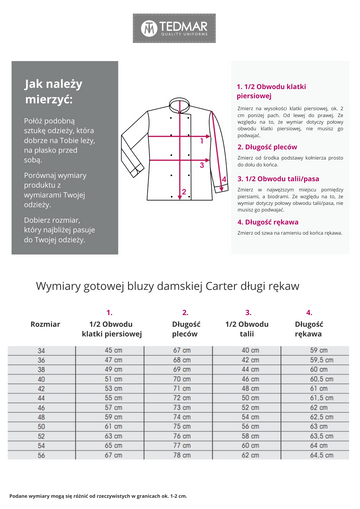 bluza kucharska damska Carter długi rękaw