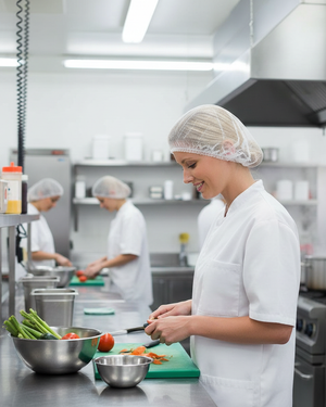 W naszej ofercie znaleźć można szeroki wybór artykułów jednorazowego użytku, które doskonale sprawdzą się w gastronomii. Wśród nich wyróżnić można przede wszystkim czapki kucharskie, które zapewniają doskonałą ochronę przed przedostaniem się do przygotowywanych posiłków włosów, a także potu. Zaletą produktów jednorazowych jest ich lekkość, a także możliwość regulacji rozmiaru. Z oczywistych względów, czapki są również znacznie bardziej higieniczne. W ofercie posiadamy zarówno tzw. budyniówki, furażerki, jak i praktyczne czepki.