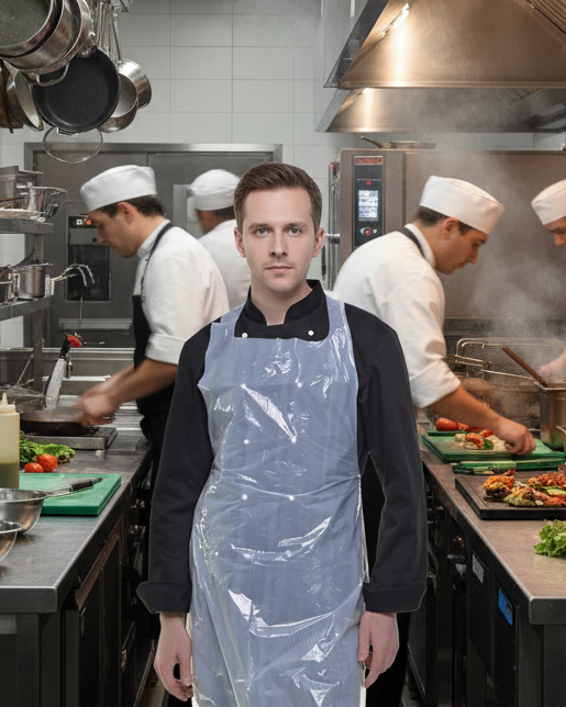 Fartuch przedni foliowy. Lekki, dopasowany do sylwetki. Grubość 20 my. Wymiary: 122 x 75 cm. Opakowanie: 100 szt.