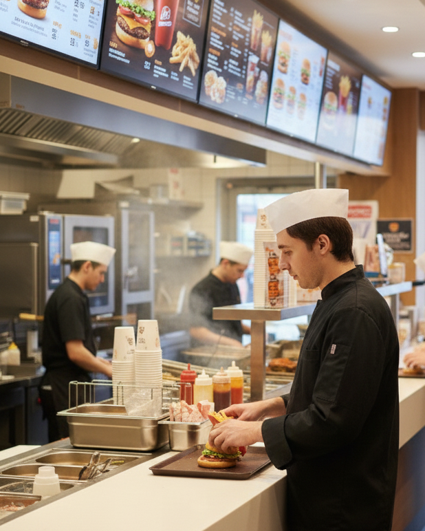 Praktyczna furażerka do pracy w gastronomii. Właściwości: góra zamknięta z przewiewnymi otworkami, regulowana.