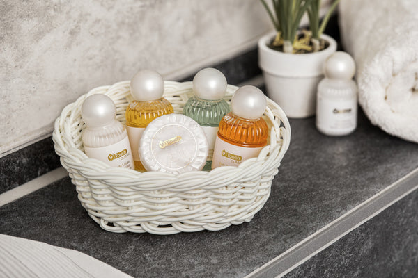 Delikatnie odżywczy balsam do ciała V-Touch Classic o subtelnym zapachu. Odpowiedni dla każdego rodzaju skóry. Balsam do ciała zapewnia optymalne nawilżenie po kąpieli lub prysznicu i pozostawia skórę miękką i gładką. Wyśmienite kompozycje zapachowe owoców cytrusowych, róży, jaśminu, cyklamenu, magnolii i białego piżma. Testowany dermatologicznie, o neutralnym pH. W przezroczystej butelce o pojemności 45 ml z zakrętką. Balsam do ciała uzupełnia gamę kosmetyków hotelowych V-Touch Classic, zamów jednocześnie pasujący żel do kąpieli/pod prysznic V-Touch Classic.