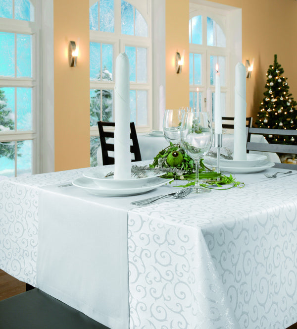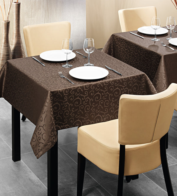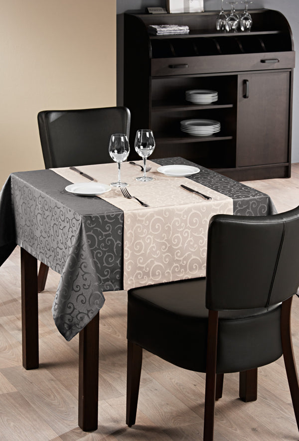 100% poliester. Gramatura ok. 150 g/m². Łatwa w pielęgnacji bielizna stołowa o trwałym jedwabistym połysku i eleganckim wzorze. Belki mają 30 metrów. Specjalne rozmiary do 180 cm szerokości na zamówienie. Trwały kolor.