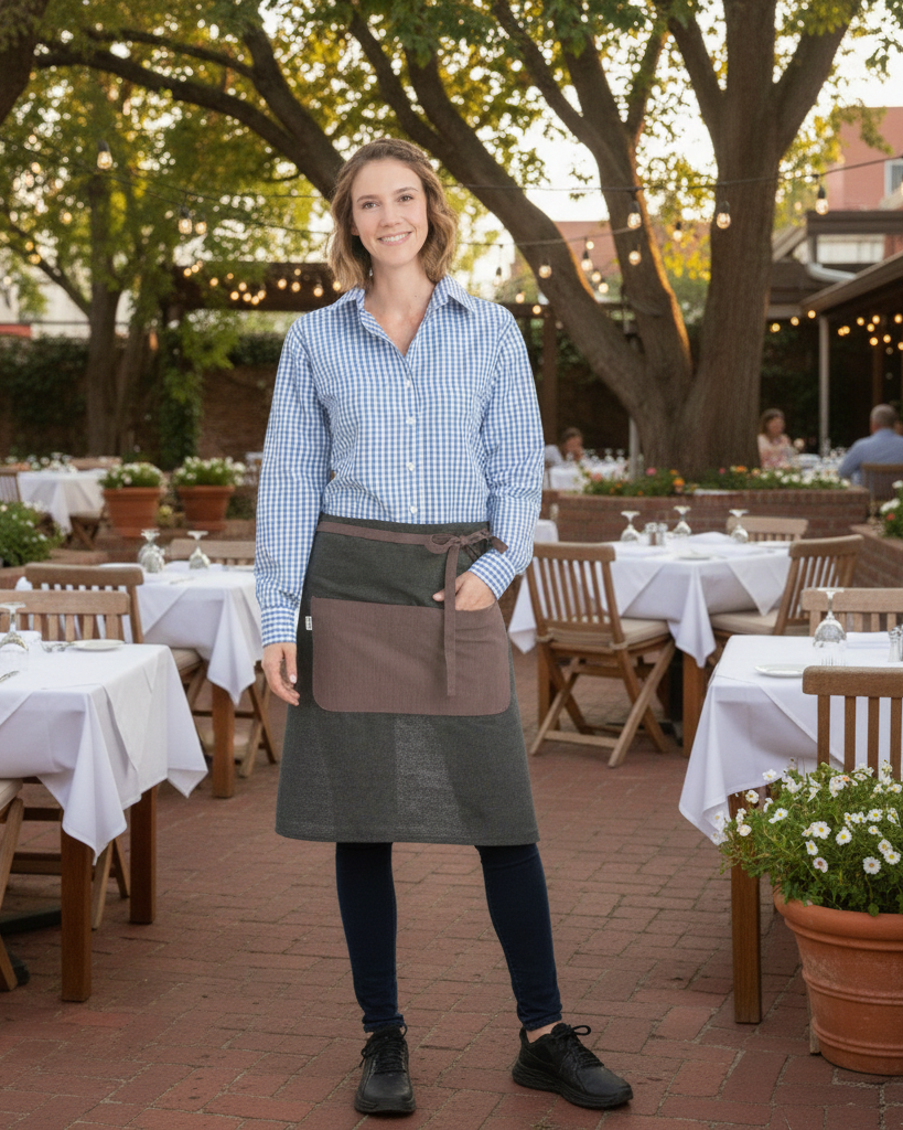 Bluzka damska o prostym kroju, z kieszenią na piersi. Cechą charakterystyczną modelu jest kolorowa kratka w dwóch kolorach do wyboru: niebieskim i czerwonym. Bluzka dostępna z długim rękawem lub rękawem o długości 3/4. Nadaje się do suszenia w suszarce Skład: 65% poliester, 35% bawełna Gramatura: 100 g/m² Pranie w 60 °C