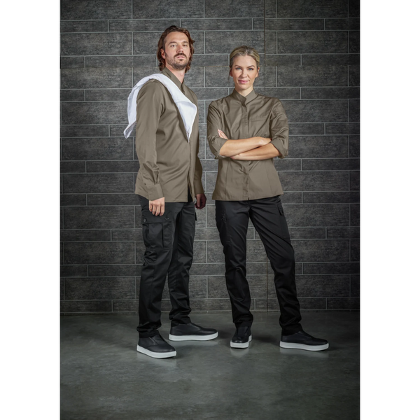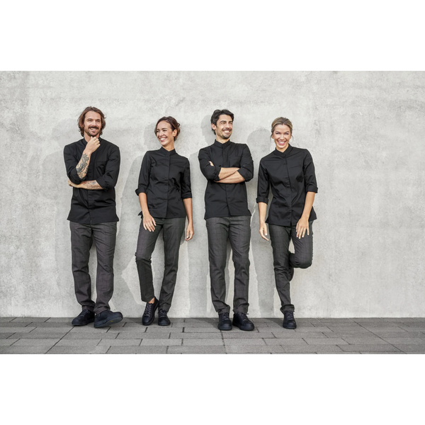 Zapraszamy do odkrycia niezwykłej wygody i elegancji w naszej damskiej bluzie kucharskiej Marco! Ta wyjątkowa bluza została wykonana z lekkiego i oddychającego materiału, który zapewni Ci komfort i styl w każdych warunkach pracy. Oto 5 korzyści, jakie oferuje nasza bluza kucharska damska Marco: Lekko taliowany krój - Ta bluza została zaprojektowana z myślą o kobiecych kształtach. Delikatne dopasowanie w talii podkreśli Twoją sylwetkę, jednocześnie zapewniając swobodę ruchów i wygodę. Wyjątkowy design - Stylowy, elegancki wygląd naszej bluzy kucharskiej przyciągnie uwagę Twoich klientów. Stójka, kryta plisa z zapięciem na zatrzaski oraz elegancka kieszeń w ramce na piersi to tylko niektóre elementy, które wyróżniają naszą bluzę na tle innych. Wygodne kieszenie - Ta bluza posiada dwuczęściową kieszeń na ramieniu oraz kieszeń na piersi w eleganckiej ramce. Dzięki temu masz miejsce na niezbędne akcesoria kucharskie, które są zawsze pod ręką. Oddychający i elastyczny materiał - Tył oraz dolna część rękawów zostały wykonane z oddychającego i elastycznego materiału piqué, co zapewnia dopasowanie i wygodny krój. Dzięki temu nasza bluza jest niesamowicie oddychająca i komfortowa nawet podczas intensywnej pracy. Łatwe pranie - Nasza bluza kucharska damska Marco jest łatwa w czyszczeniu. Można ją prać w temperaturze do 60 stopni, dzięki czemu jest idealna dla pracujących w kuchni, gdzie czystość jest szczególnie ważna. Nasza bluza kucharska damska Marco jest idealna dla kobiet pracujących w branży gastronomicznej, takich jak kucharka, kelnerka czy Pań pracujących w cateringu. Jest wygodna, stylowa i niezwykle funkcjonalna. Została zaprojektowana z myślą o pracy, dzięki czemu będzie Twoim niezawodnym partnerem podczas intensywnych dni w kuchni. Nie czekaj dłużej i zamów naszą bluzę kucharską damska Marco już dziś! Długość pleców wynosi 68 cm dla rozmiaru 36. Materiał: 65% poliester, 35% bawełna, 150 g/m.kw. Pranie: 60 stopni
