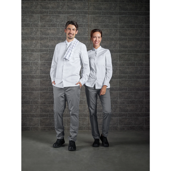Poszukujesz kitla kucharskiego, który zapewni Ci elegancki wygląd i wygodę podczas pracy w kuchni? Sprawdź naszą nową bluzę kucharską męską Marco! Oto pięć głównych korzyści, jakie oferuje nasza bluza kucharska Marco: Elegancki wygląd: Nasza bluza kucharska jest wykonana z lekkiego i oddychającego materiału, który zapewnia nie tylko wygodę, ale także elegancki wygląd. Z szykowną stójką i krytą plisą z zapięciem na zatrzaski, dwuczęściową kieszenią na ramieniu oraz kieszenią na piersi w eleganckiej ramce, nasza bluza kucharska Marco dodaje wyrafinowanego stylu każdemu kucharzowi. Wygodny krój: Dzięki oddychającemu i elastycznemu materiałowi piqué na plecach, nasza bluza kucharska Marco ma dopasowany i wygodny krój. Tył, jak również dolna część rękawów, wykonane są z oddychającego materiału, który zapewnia maksymalny komfort i swobodę ruchów. Funkcjonalność: Nasza bluza kucharska Marco posiada praktyczną zapinkę na karku do przypięcia fartucha oraz mankiet koszuli zapinany na zatrzaski, co zapewnia klasyczny wygląd i funkcjonalność. Trwałość: Nasz kitel kucharski Marco wykonany jest z wysokiej jakości materiałów, takich jak 65% poliester i 35% bawełna, co gwarantuje trwałość i długotrwałe użytkowanie. Łatwe utrzymanie: Nasza bluza kucharska Marco może być prana w temperaturze do 60 stopni, co zapewnia łatwe utrzymanie i wysoki stopień higieny. Nasza kitel kucharski męski Marco jest przeznaczony dla kucharzy i innych specjalistów z branży gastronomicznej, którzy szukają stylowej, wygodnej i funkcjonalnej odzieży do pracy. Nasz produkt jest idealny do użytku w kuchni, restauracji, hotelu czy innych miejscach związanych z branżą gastronomiczną. Nie czekaj dłużej i zamów naszą bluzę kucharską Marco już dziś! Dzięki niej poczujesz się elegancko i wygodnie podczas swojej pracy, a zarazem zachowasz trwałość i funkcjonalność. Zamów teraz i bądź gotowy do pracy w kuchni! Długość pleców wynosi 79 cm dla rozmiaru 50. Materiał: 65% poliester, 35% bawełna, 150 g/m.kw. Pranie: 60 stopni