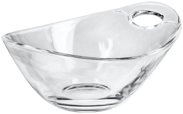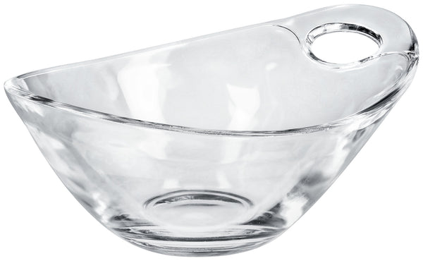 Szklane miski z uchwytami ułatwiającymi serwowanie. Możliwość mycia w zmywarce i układania w stosy.