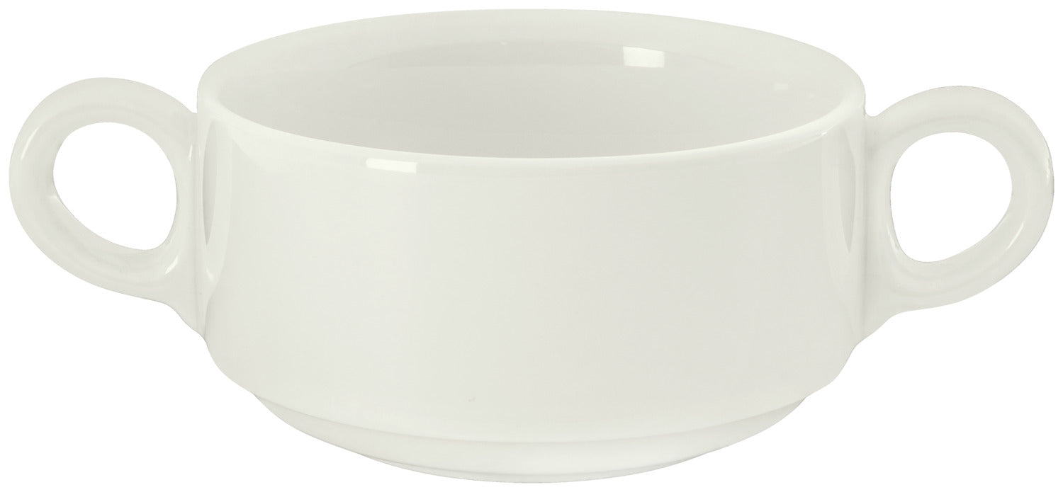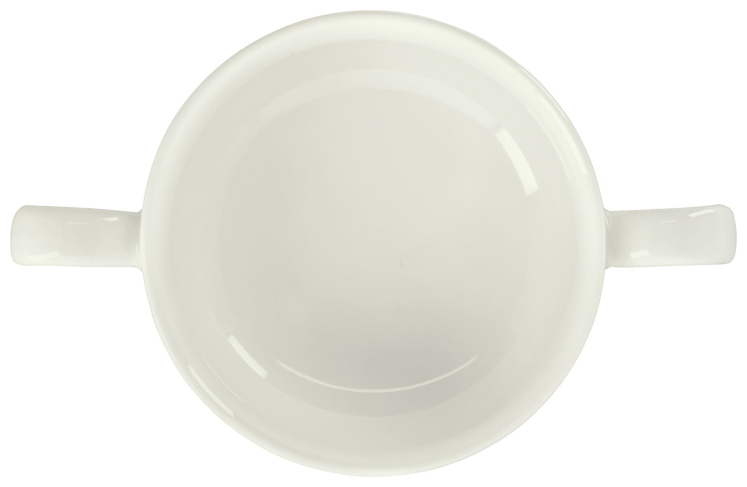 Porcelanowa bulionówka w lekko kremowym kolorze. Wysoka odporność. Wspaniałe szkliwo. Można myć w zmywarce i używać w kuchence mikrofalowej.