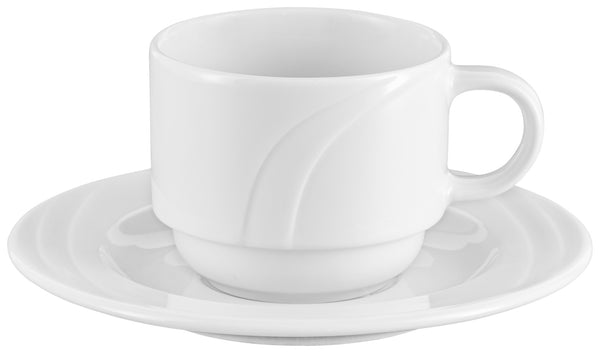 Spodek do bulionówki / kubka / filiżanki do kawy wykonany z białej porcelany. Z eleganckim reliefem. Niezwykle wytrzymały. Można myć w zmywarce i używać w kuchence mikrofalowej.