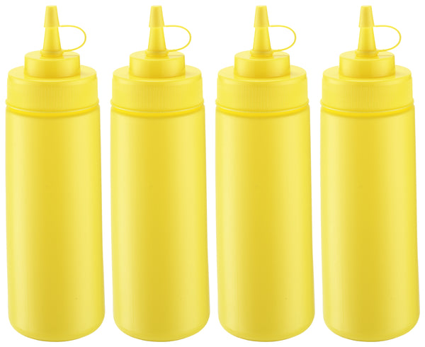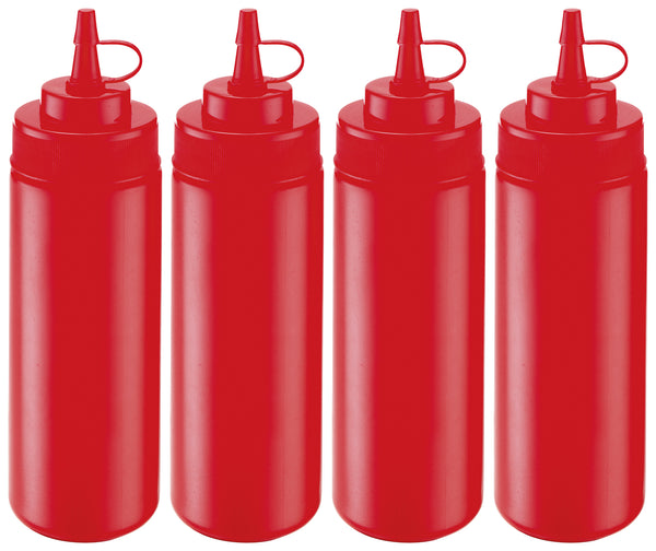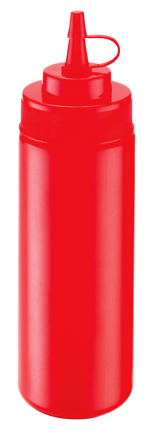 Klasyczne butelki dozujące do ketchupu, musztardy, majonezu i innych sosów. Korpus wykonany z elastycznego polietylenu z otworem Ø 2,7 cm i zakrętką z twardego plastiku. Wylewkę można łatwo skrócić w celu zwiększenia przepływu. Nadaje się do kontaktu z żywnością i mycia w zmywarce.