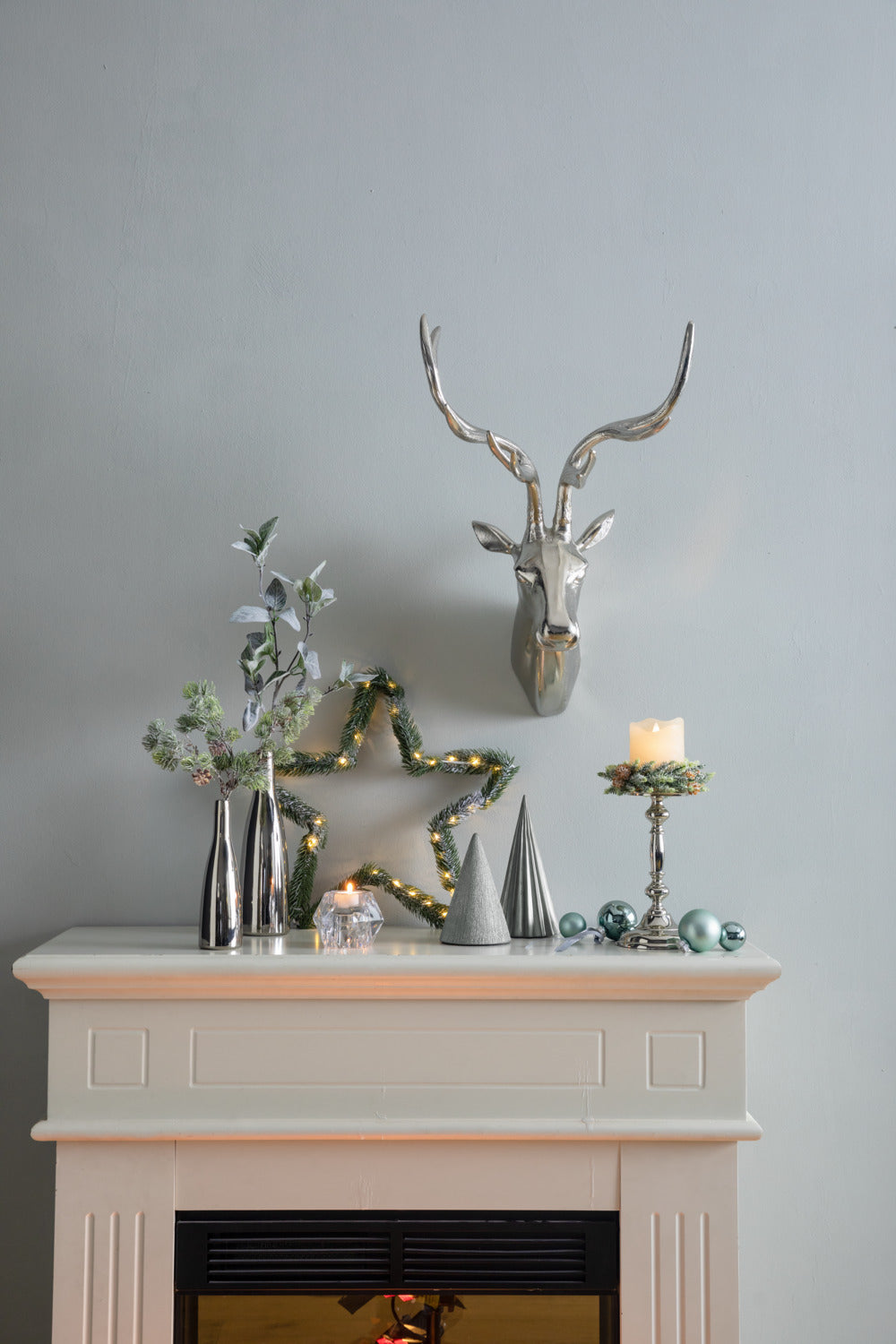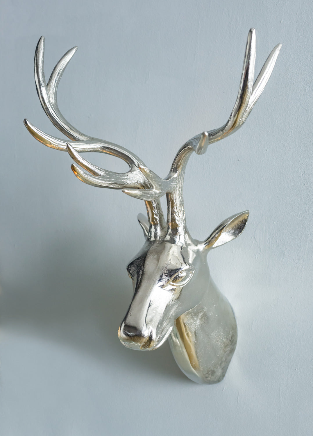 Głowa jelenia wykonana z litego, lakierowanego aluminium.