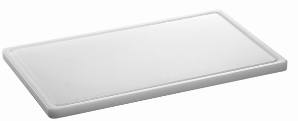 Deska do krojenia wykonana z twardego polietylenu. Powierzchnia cięcia 49 x 28,5 cm, grubość deski 22 mm. Neutralna w zapachu. Bezpieczna dla żywności i antypoślizgowa dzięki sześciu gumowym nóżkom. Odporna na uderzenia i przecięcia. Delikatna dla noży. Można myć w zmywarce.