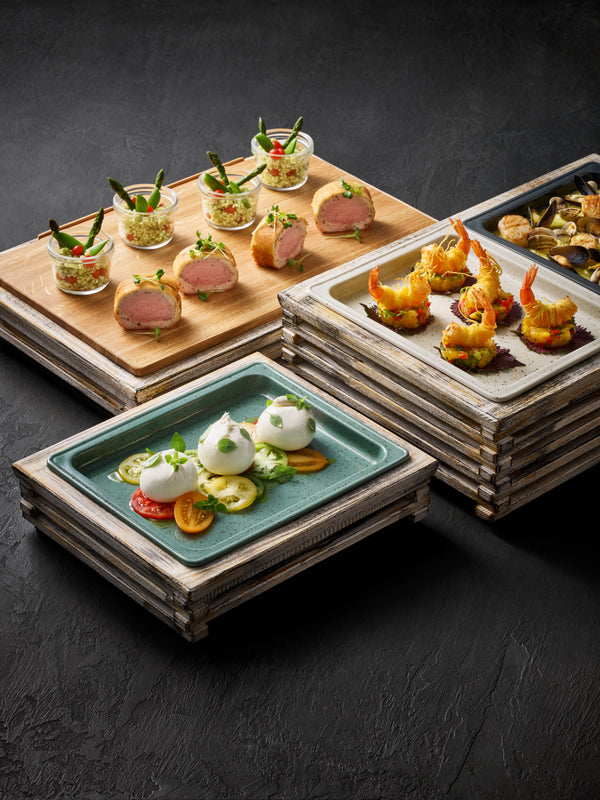 Drewniana deska do serów, pasująca do tacy o wysokości 6 cm. Nie nadaje się do mycia w zmywarce.