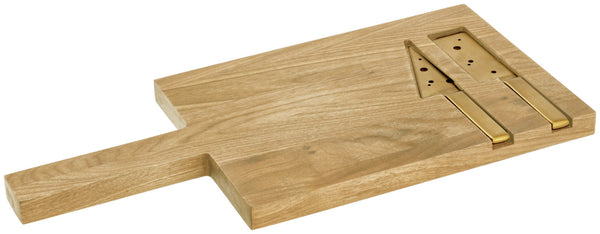 Deska do serów wykonana z olejowanego drewna orzechowego lub dębowego z uchwytem i zintegrowanymi nożami do sera. Noże do sera są wykonane ze stali nierdzewnej 18/10 ze złotą powłoką i można je myć w zmywarce. Są one mocowane za pomocą magnesu. Deska do serów nie nadaje się do mycia w zmywarce. Bezpieczna dla żywności. Możliwość personalizacji na życzenie.