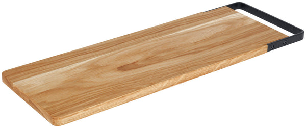Deska do serwowania z olejowanego dębu z nowoczesnym stalowym uchwytem w kolorze czarnym.