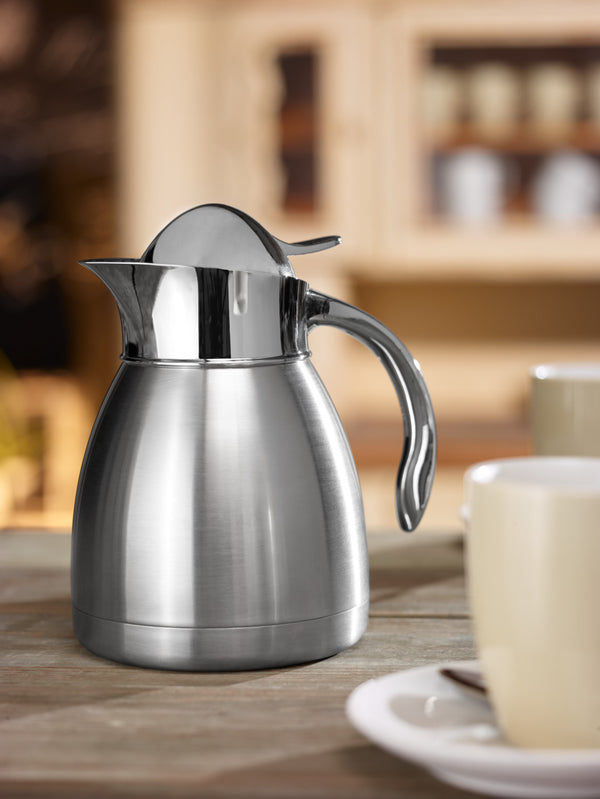 Klasyczny dzbanek próżniowy wykonany ze stali nierdzewnej 18/10. Z wkładem ze stali nierdzewnej o podwójnych ściankach. Łatwy w pielęgnacji. Wytrzymały. Solidny. Nie można myć w zmywarce.