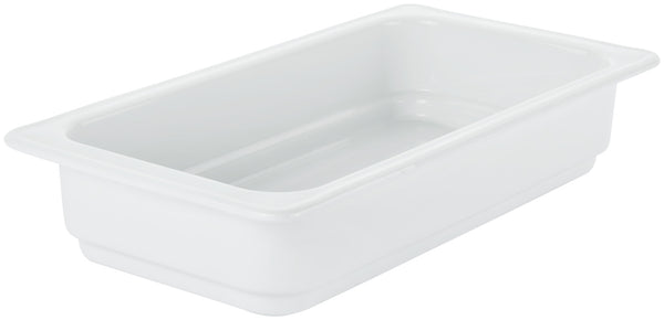 Pojemnik GN wykonany z wysokiej jakości porcelany, który wygląda bardziej jak miska do serwowania niż typowy pojemnik GN. Jednocześnie pojemnik GN jest stabilny i wytrzymały. Można używać w piekarniku w temperaturze do 300°C. Można myć w zmywarce i używać w kuchence mikrofalowej.
