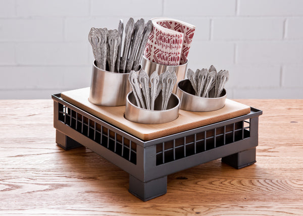 Pojemnik na sztućce wykonany ze stali nierdzewnej 18/10, pasujący do naszych systemów bufetowych MONTANA, PORTLAND, NATCHEZ i FUNDALE.