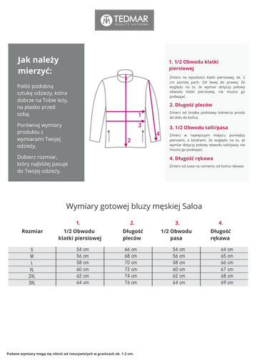 Wygodna męska bluza z suwakiem. Dwie kieszenie zapinane na suwak, dwuczęściowa kieszeń na długopis na rękawie oraz boczna szlufka. Model męski o prostym kroju. Długość po plecach: 68 cm w rozmiarze M. Skład: 47% bawełna, 47% poliester, 6% elastan Pranie w 40°C