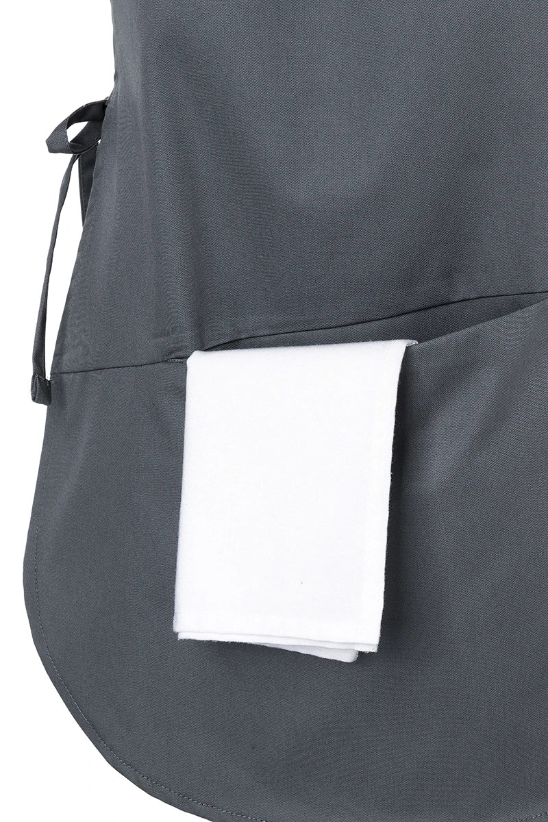 Fartuch Iza to praktyczny fartuszek, którego obwód można indywidualnie dopasować za pomocą troczków po bokach. Funkcjonalna, duża kieszeń na froncie pomoże w przechowywaniu potrzebnych akcesoriów. Fartuszek uszyto z łatwej w pielęgnacji tkaniny mieszanej, którą dodatkowo pokryto szlachetną apreturą.