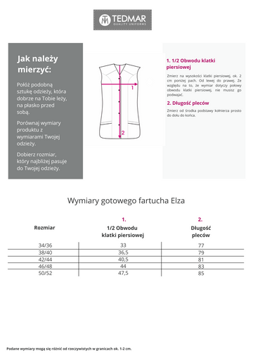Fartuch Elza to praktyczny fartuszek, którego obwód można indywidualnie dopasować za pomocą troczków po bokach. Dwie funkcjonalne, naszywane kieszenie na froncie pomogą w przechowywaniu potrzebnych akcesoriów. Fartuszek uszyto z łatwej w pielęgnacji tkaniny mieszanej, którą dodatkowo pokryto szlachetną apreturą.