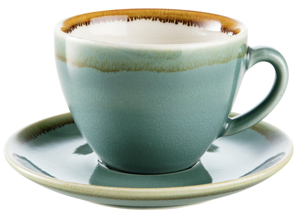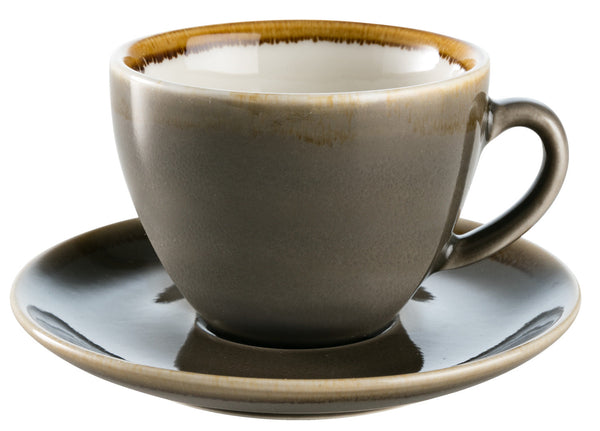 Filiżanka do kawy wykonana ze szkliwionej porcelany z lekko nieregularnym, kolorowym brzegiem. Dostępna w różnych kolorach. Można myć w zmywarce. Nie nadaje się do mikrofalówki.