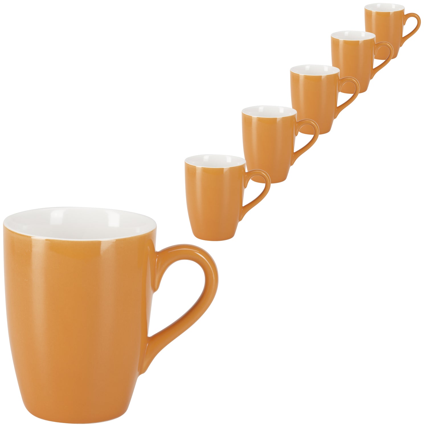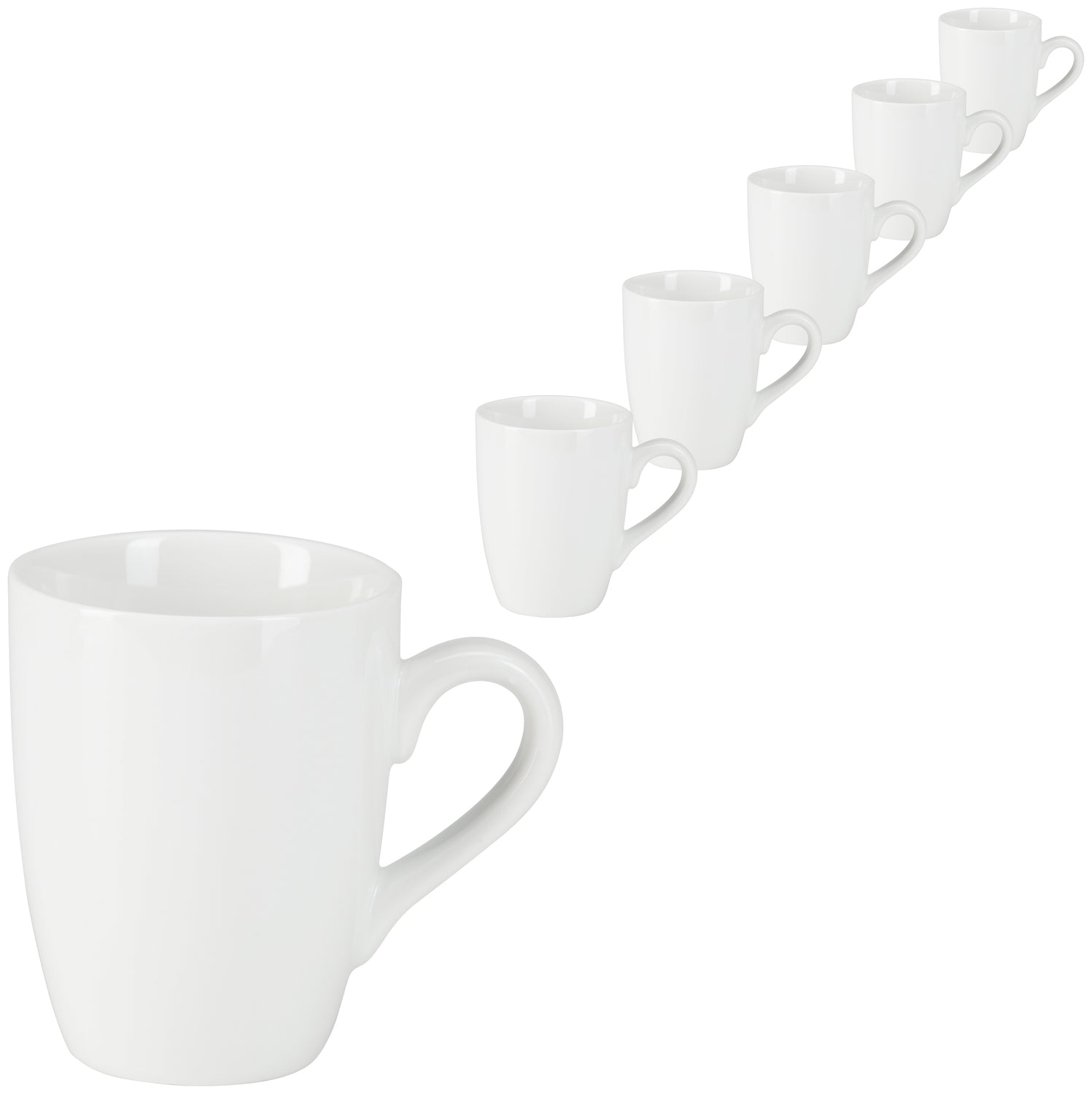 Kolorowe lub białe kubki porcelanowe. Wewnątrz białe. Solidnie wykonane. Można myć w zmywarce i używać w kuchence mikrofalowej..