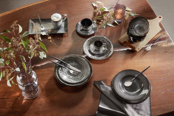 Kubek z kolorowej kamionki. Z nieregularnymi krawędziami. Unikalny dzięki specjalnemu szkliwieniu. Każdy element jest niepowtarzalny i może się różnić wybarwieniem od jasnych tonów do ciemnych. Można myć w zmywarce i używać w kuchence mikrofalowej