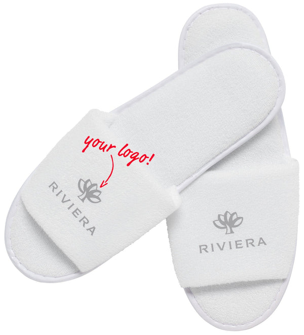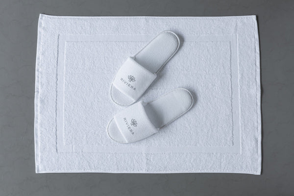 Wierzch: 100% poliester. Podeszwa: 100% polietylen ** (EPE). Wygodne kapcie frotte unisex o otwartej konstrukcji z piankową wkładką o grubości 3 mm i antypoślizgową podeszwą zewnętrzną o wysokości 7 mm. Pakowane parami w przyjazne dla środowiska papierowe etui. Długość kapcia: 29 cm. Pasują do butów w rozmiarach od 35 do 46.