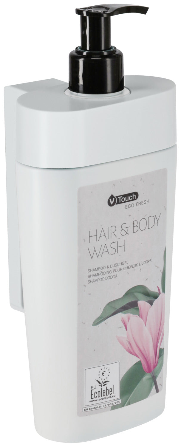 Zrównoważony, praktyczny i wygodny jednocześnie: delikatna pielęgnacja włosów i ciała, dwa w jednym. Delikatnie oczyszczający żel do włosów i ciała jest odpowiedni dla wszystkich rodzajów włosów i skóry. EU Ecolabel to ekologiczny znak jakości Unii Europejskiej, przyznawany produktom, które gwarantują wysokie standardy wydajności, ale charakteryzują się mniejszym wpływem na środowisko w całym cyklu życia. Testowany dermatologicznie i o neutralnym pH! Dozownik z pompką wielokrotnego napełniania jest wykonany w 100% z materiałów pochodzących z recyklingu i może być używany jako dozownik wolnostojący lub zawieszony na pasującym uchwycie ściennym Uranus. Pasujący uchwyt należy zamówić osobno. Zawartość: 400 ml