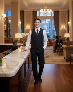 Kamizelki to niezastąpione elementy garderoby dla obsługi w eleganckich restauracjach. Podnoszą prestiż każdego punktu gastronomicznego i nadają profesjonalnej prezencji pracującej w nim załodze - są składnikiem stylu, który współtworzy pierwsze wrażenie gości przekraczających próg lokalu.