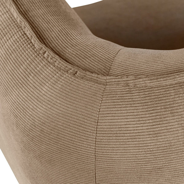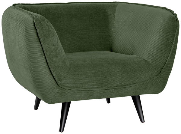 Przytulny fotel z podłokietnikami wykonanymi z wysokiej jakości tkaniny sztruksowej i nogami z lakierowanego na czarno drewna bukowego. Tkanina sztruksowa na meble jest solidnym i trwałym materiałem, dlatego idealnie nadaje się do intensywnie uczęszczanych holi. Tkanina ta znana jest z unikalnej prążkowanej tekstury, która nie tylko wygląda atrakcyjnie, ale jest również przyjemna w dotyku. Nadaje się wyłącznie do użytku wewnątrz pomieszczeń. Dostarczany w stanie zdemontowanym, nogi należy przymocować za pomocą dołączonego materiału montażowego.