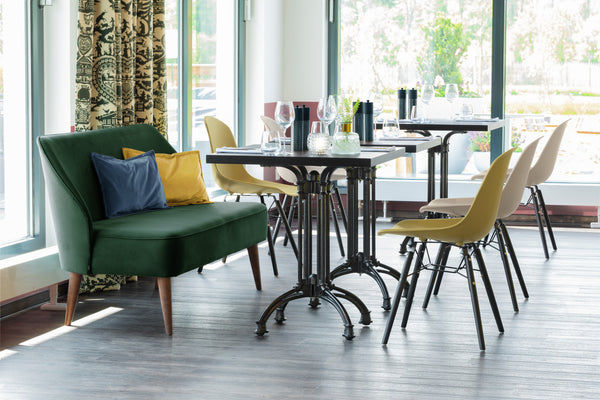 Nowoczesna sofa wykonana z aksamitnej tkaniny (100% poliester). Wysoki komfort siedzenia. Odporna na ścieranie i ognioodporna. Nadaje się wyłącznie do użytku wewnątrz pomieszczeń. Możliwość zamówienia fotela w tym samym czasie. Podstawa nie wchodzi w skład zestawu. Należy zamówić osobno.