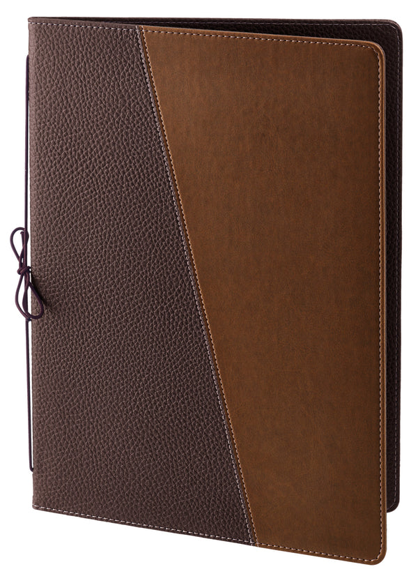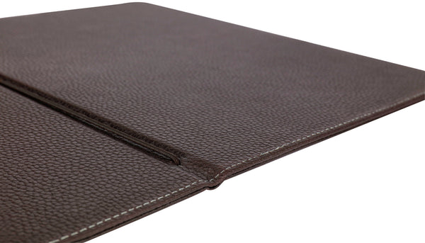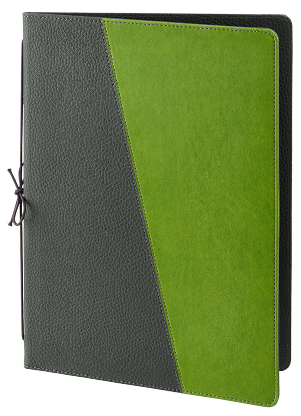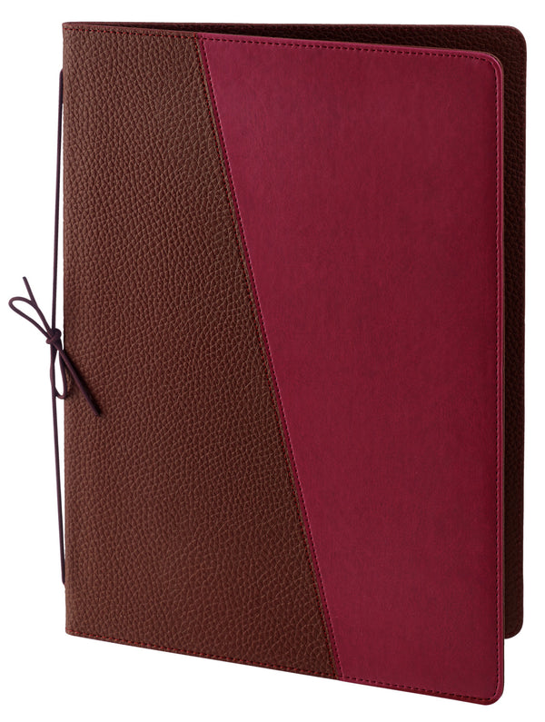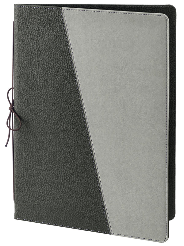 Menu wykonane z dwukolorowej imitacji skóry, bez graweru. Zamykane na sznurek, na podwójne etui. Możliwość czyszczenia. Wytrzymałe.