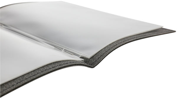 Ręcznie wykonane menu na wyjątkowo wytrzymałym tworzywie sztucznym. Zawiera trzy podwójne przezroczyste etui na dwanaście stron. Wyprodukowano w Europie. Doskonały chwyt i jedwabisty połysk. Odporne na rozdarcia. Wodoodporne. Bardzo łatwe do czyszczenia. Można przetrzeć wilgotną szmatką. Zamknięcie na zatrzask ułatwia wymianę kart. Możliwość personalizacji na życzenie.