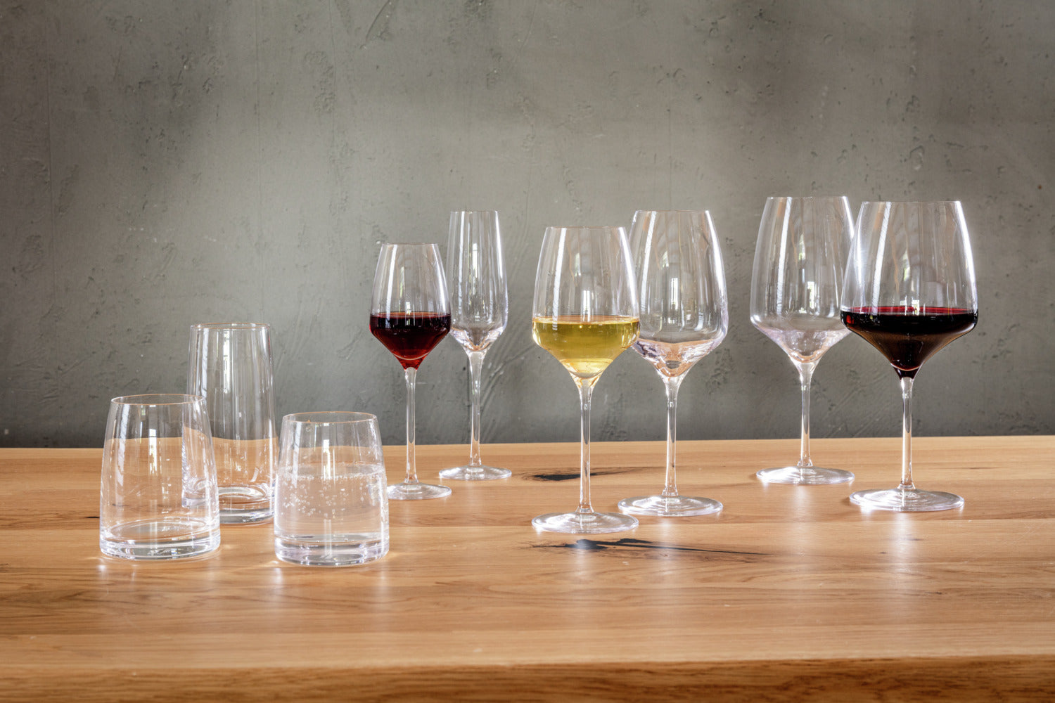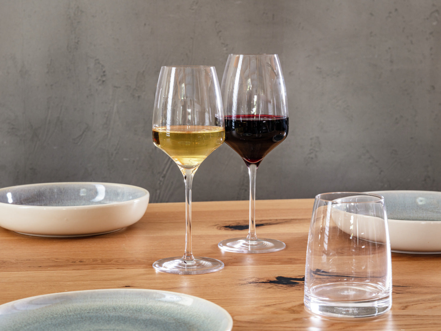 Kieliszek do czerwonego wina wykonany z wysokiej jakości szkła kryształowego. Dozownik 0,1 litra + linia napełniania 0,2 litra. Można myć w zmywarce.