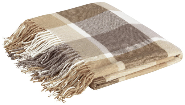 100% poliakryl. Gramatura ok. 180 g/m². Miękki, przytulny koc w piękną kratę z frędzlami. Nadaje się do użytku wewnątrz i na zewnątrz. Przyjemnie ciepły.
