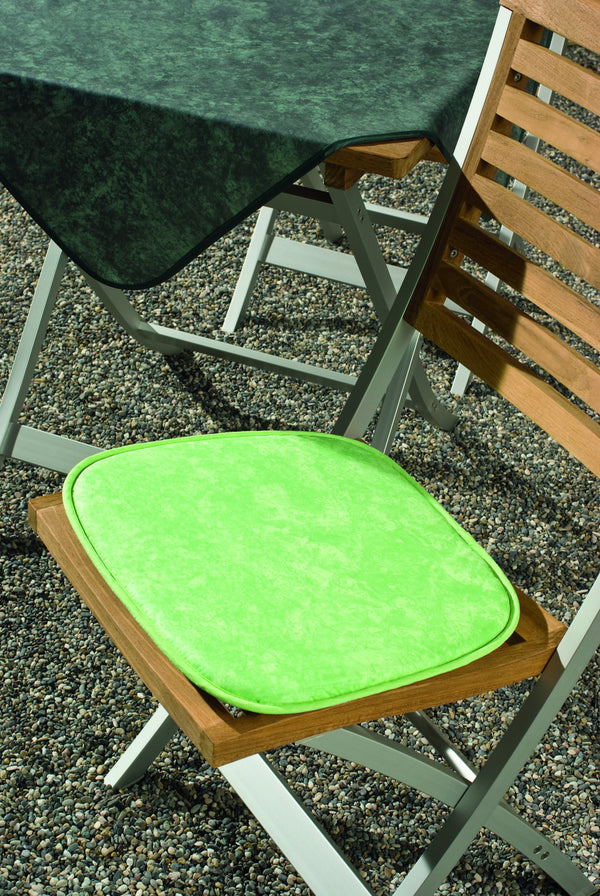Łatwe w pielęgnacji poduszki do siedzenia do użytku wewnątrz i na zewnątrz, o dobrej odporności na światło. Powlekane akrylem. Bez gumek, ale z antypoślizgowym spodem. Plamy można zetrzeć wilgotną szmatką. Tkanina: 50% poliester, 50% bawełna.