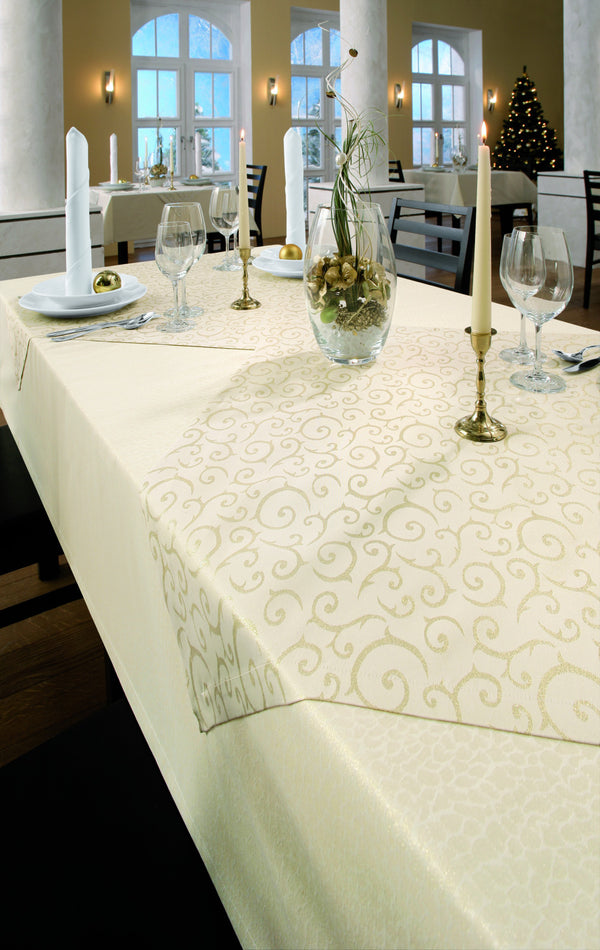 100% poliester. Gramatura ok. 150 g/m². Łatwy w pielęgnacji bieżnik o trwałym jedwabistym połysku i eleganckim wzorze. Trwały kolor.