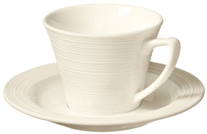 Kolekcja porcelany bone china w kremowym kolorze z reliefem. Klasyczny kształt. Nowoczesny design. Wysoka odporność. Błyszczące szkliwo. Nadaje się do mycia w zmywarce i używania w kuchence mikrofalowej. Waga płaskiego talerza o średnicy 25,5 cm: 585 g. Gwarancja dostępności przez 10 lat.