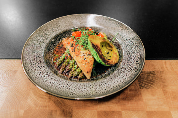 Talerz z kolorowej kamionki, z nieregularnymi krawędziami. Unikalny dzięki specjalnemu szkliwieniu. Każde naczynie jest niepowtarzalne. Kolory mogą się różnić tonami od jasnych do ciemnych. Można myć w zmywarce i używać w kuchence mikrofalowej