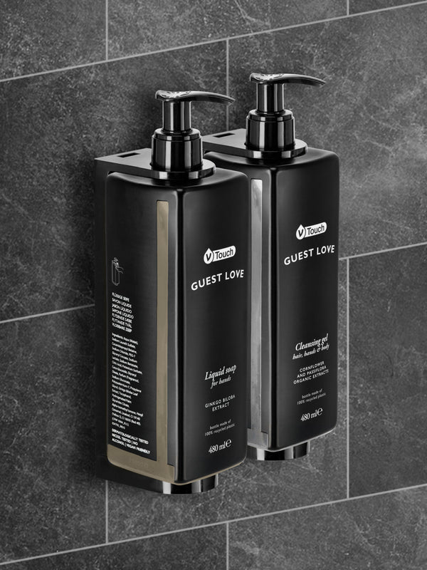 Łagodne mydło w płynie V-Touch Guest Love oczyszcza dłonie z brudu i bakterii oraz delikatnie pielęgnuje skórę. Lekko pachnąca formuła jest wzbogacona ekstraktem z miłorzębu japońskiego. Testowane dermatologicznie, o neutralnym pH. Praktyczny dozownik z pompką wykonany z rPET można łatwo i elastycznie napełniać. Całe opakowanie nadaje się w 100% do recyklingu. Pojemność butelki z pompką: 480 ml. Pasujący uchwyt należy zamówić osobno.