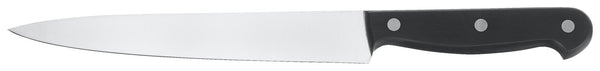 Niezwykle ostry profesjonalny nóż do szynki z ostrzem wykonanym z odpornej na korozję stali chromowo-molibdenowo-wanadowej ze stopu X50CrMoV15 i rękojeścią z tworzywa POM (polioksymetylen) - potrójnie nitowany. Gwarantowana długotrwała ostrość. Długość ostrza 20 cm, długość całkowita 32 cm. Ergonomicznie ukształtowana rękojeść z dobrym wyważeniem między rękojeścią a ostrzem dla wygodnej obsługi.