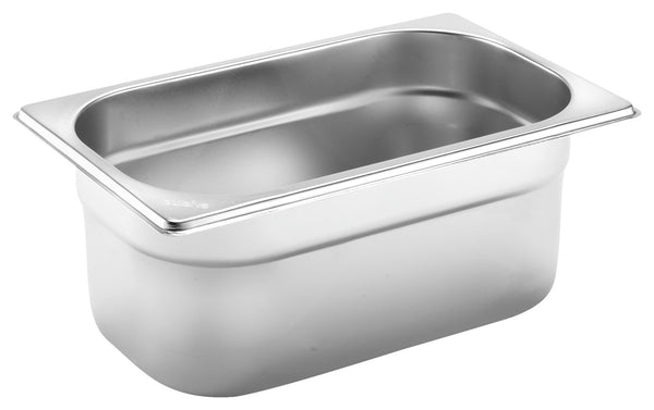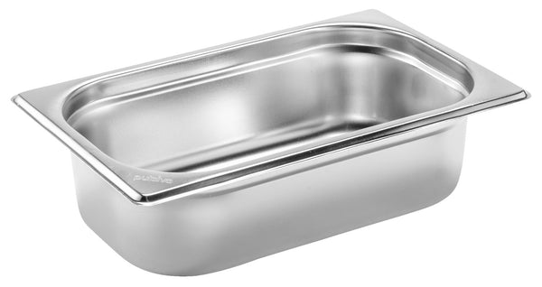 Stal nierdzewna, odporna na rdzę. Znormalizowane wymiary, z praktyczną krzywką do sztaplowania, można myć w zmywarce. Możliwość zamówienia pasujących pokrywek z grupy Basic i przegródek GN.