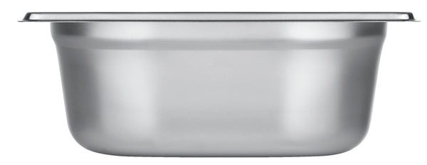Stal nierdzewna, odporna na rdzę. Znormalizowane wymiary, z praktyczną krzywką do sztaplowania, można myć w zmywarce. Możliwość zamówienia pasujących pokrywek z grupy Basic i przegródek GN.
