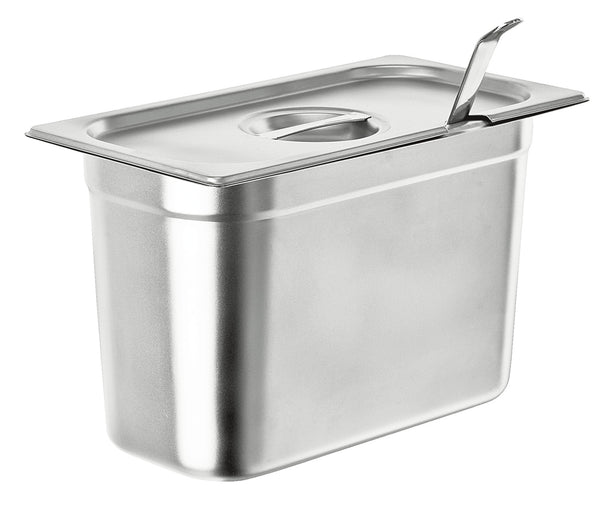 Pokrywy GN ze stali nierdzewnej. Odpowiednie do pojemników GN z grupy Basic. Można myć w zmywarce. Z wgłębieniem na łyżkę.