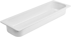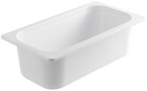 Pojemniki GN wykonane z melaminy. Można stosować w temperaturach od -30°C do +70°C. Bezpieczne dla żywności. Można układać w stosy. Odporne na uderzenia. Można myć w zmywarce.